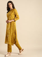 All About You Women Mustard Yellow & Off-White Ethnic Motifs Embroidered Kurta Set - XS