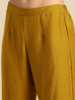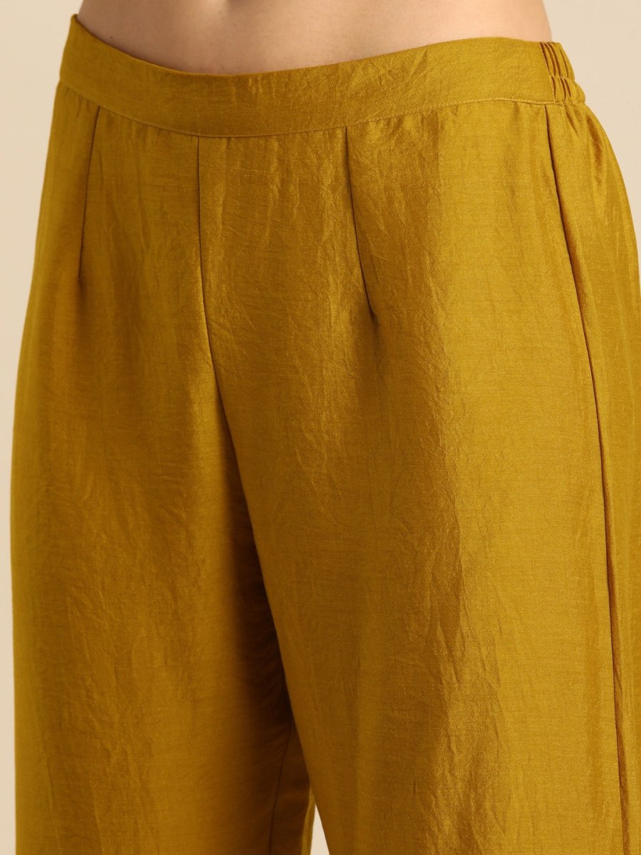 Mustard yellow and off-white embroidered Kurta with Trousers