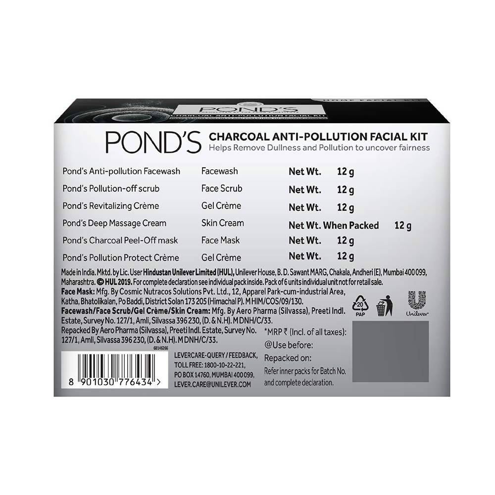 Ponds Charcoal Anti-pollution Home Facial Kit: 72 gm This kit is Contains: Ponds Anti-pollution Face Wash - 12 gm Ponds Pollution-off scrub - 12 gm...