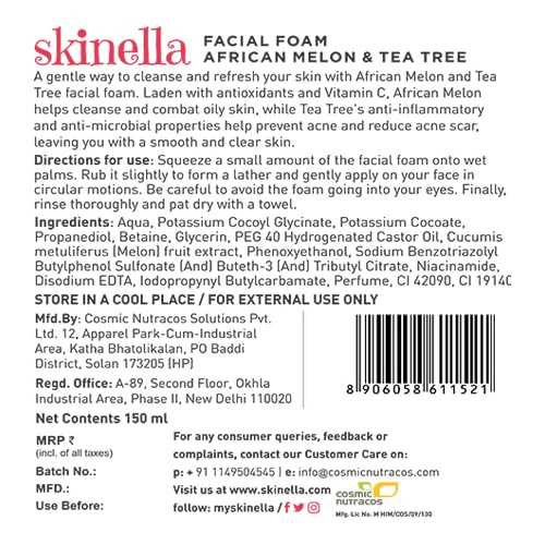 Skinella African Melon & Tea Tree Facial Foam Legal Disclaimer:  Product images are for illustrative purposes only. Images/packaging/ labels ma...
