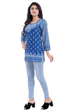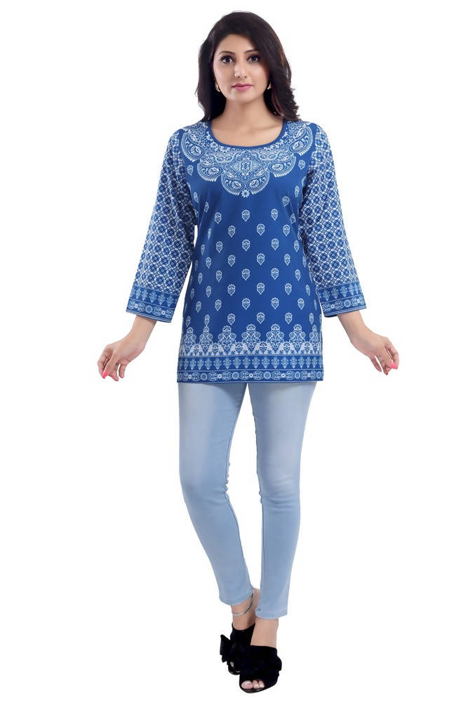 Snehal Creations Royal Blue Faux Crepe Short Kurti Tunic Top