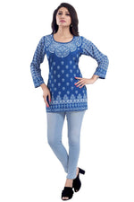 Snehal Creations Royal Blue Faux Crepe Short Kurti Tunic Top Color: Royal Blue Top Type: Short Kurti Material: Faux Crepe Dimensions: 16x12x1 ...