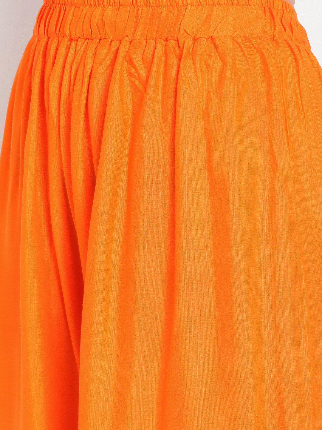 A pair of Orange solid woven flared fit Palazzos, opaque, and slip-on closure