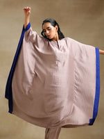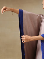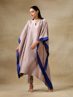 trueBrowns Grey Textured Silk High Low Kaftan Pant SetDescription Grey silk-blend kaftan set with unique high low hemline. Blue contrast color band...