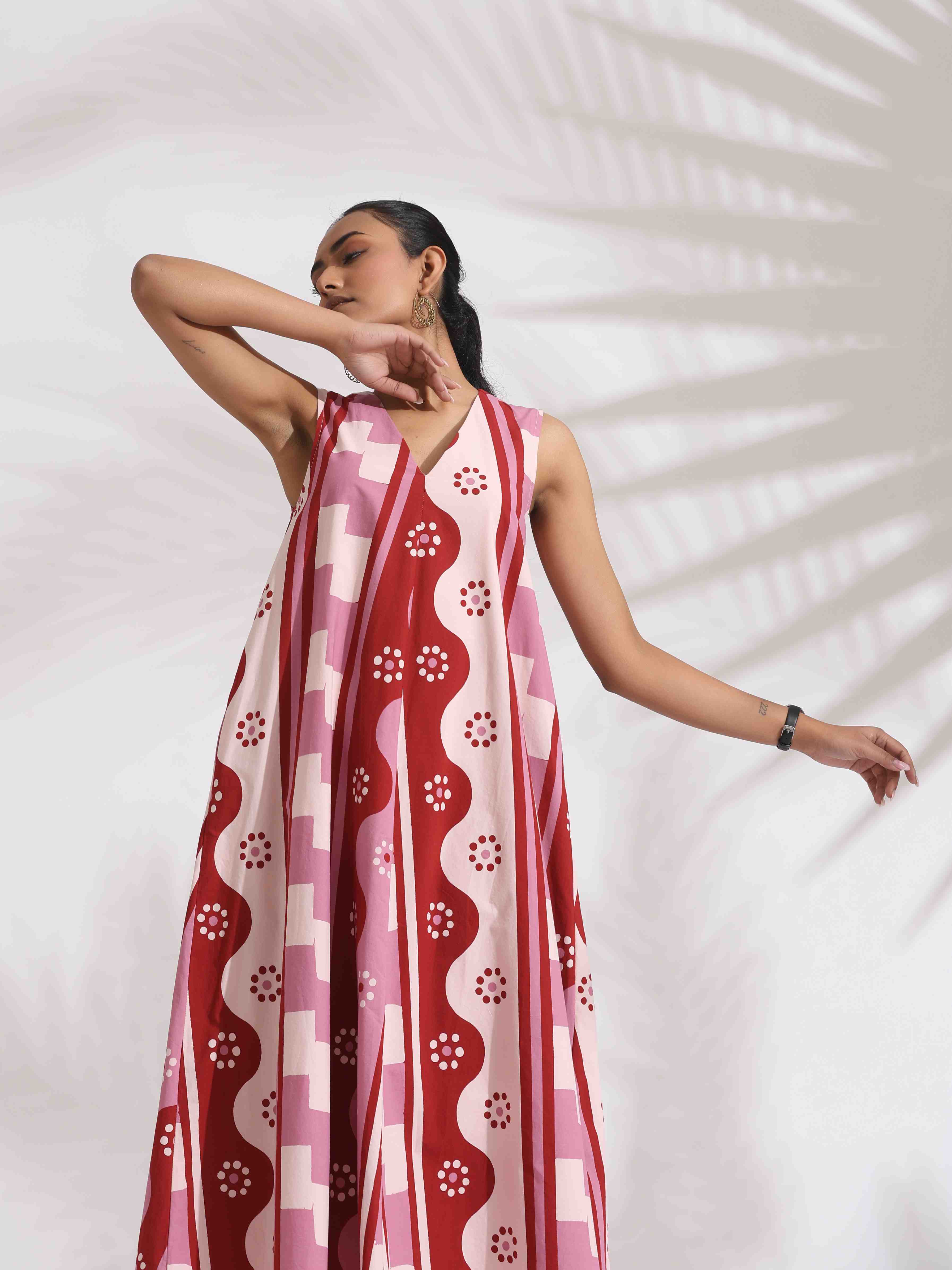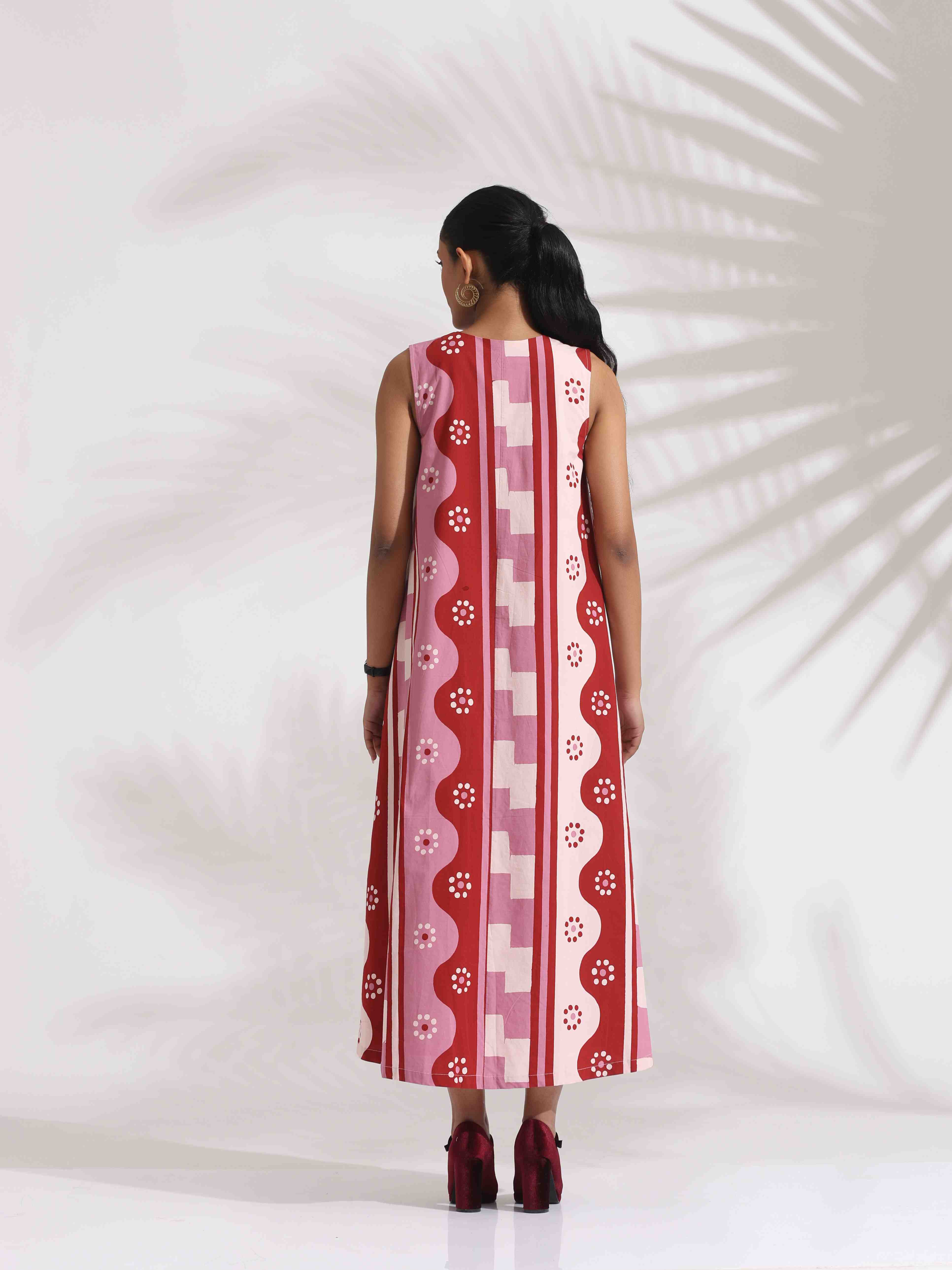 • Elevate your style with this pink cotton printed dress, it's an ideal blend of elegance and comfort.