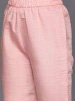 Varanga Women Peach Embroidered Straight Kurta Paired With Tonal Bottom And Organza Embroidered Dupatta - S