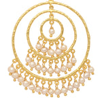 18k gold-plated earrings featuring three circular rings, each adorned with gracefully falling pearls. Anti-tarnish and anti-allergic, exuding elegance and sophistication.
