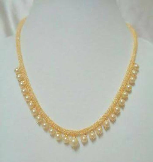 Gold Designer Pearls Necklace: A Perfect Gift For Every Princess. Package Details: 1 Necklace Stone: Pearl Base Material: Alloy Height:  20cm Width...