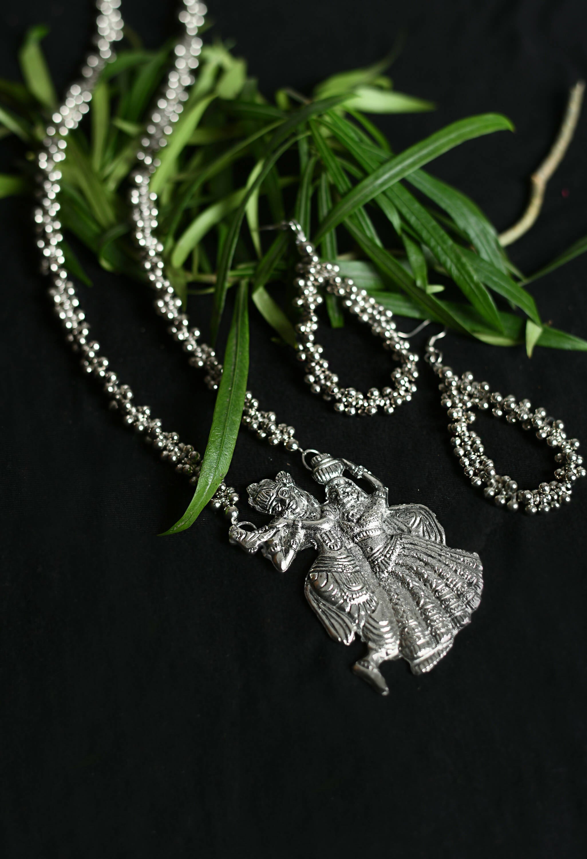 Mominos Fashion Johar Kamal Oxidised Silver-Plated Brass Finish Radha Kishan Long Necklace For Women - Distacart