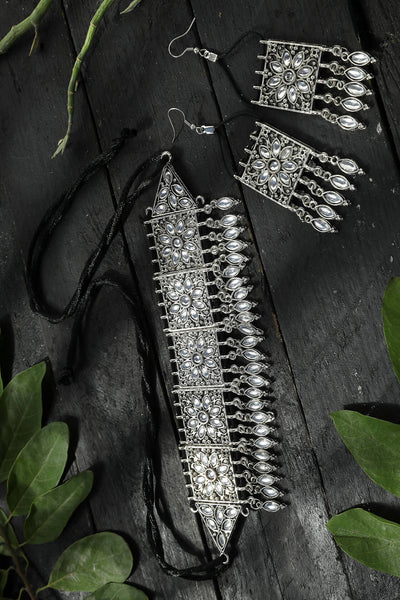 Mominos Fashion Johar Kamal Women Silver-Plated Brass Finish Mirror Work Choker