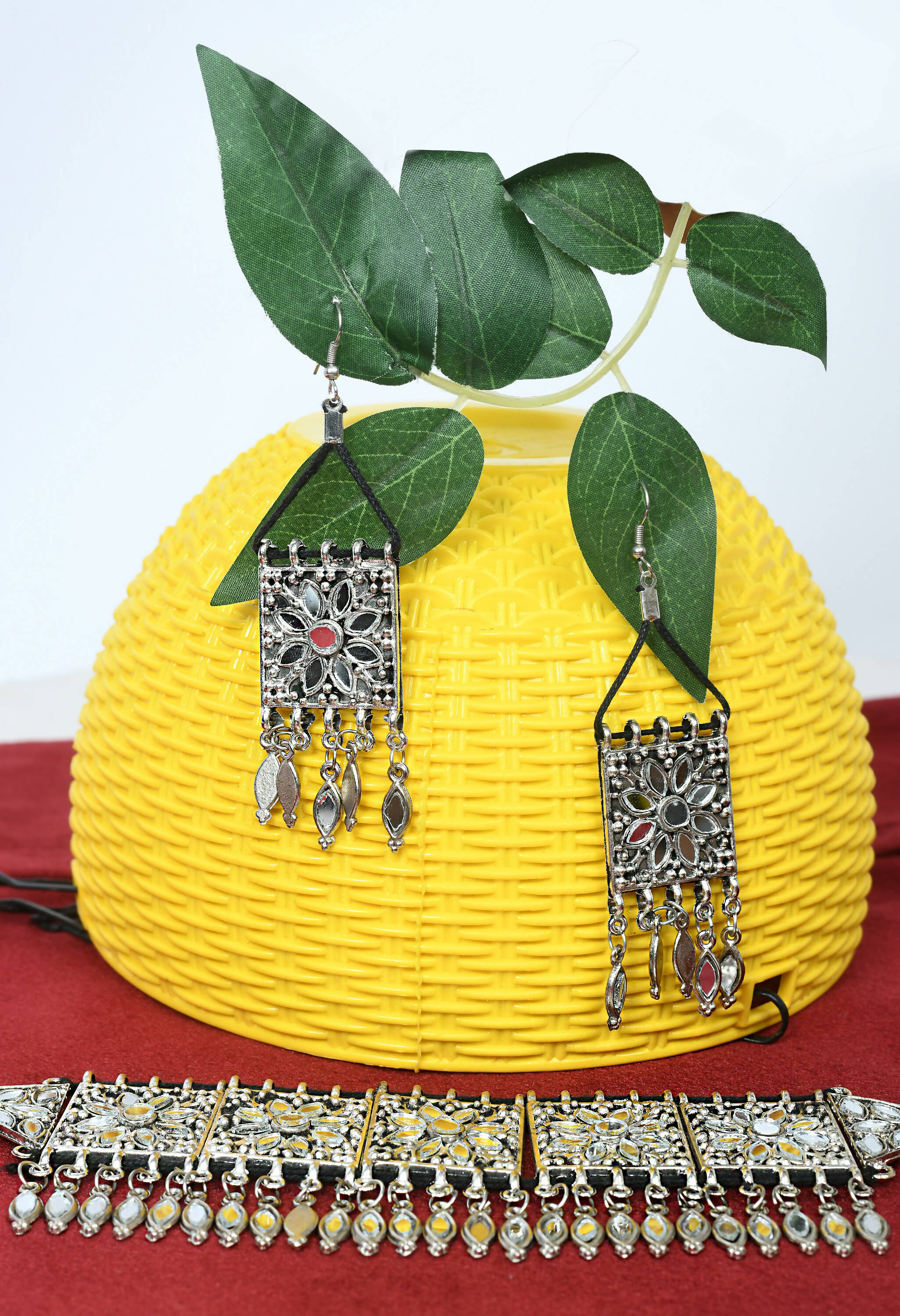 Mominos Fashion Johar Kamal Women Silver-Plated Brass Finish Mirror Work Choker Style/Collection: Oxidised Actual Color: Silver Product Type: Ch...