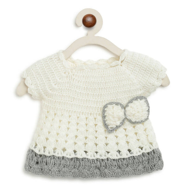 ChutPut Hand knitted Crochet Wool Dress For Baby Girls - White
