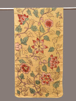 Light Yellow Kalamkari Hand Painted Sico Stole with Floral Design. This hand painted kalamkari is done using natural dyes. As they are natural colors they bleed with initial washes, so we suggest Dry clean.