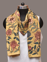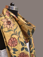 Yellow Kalamkari Hand Painted Sico Stole with Floral Design. This hand painted kalamkari is done using natural dyes. As they are natural colors they bleed with initial washes, so we suggest Dry clean.
