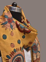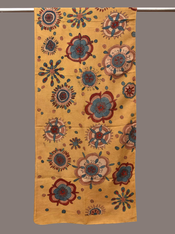 Yellow Kalamkari Hand Painted Woolen Handloom Stole with Floral Design - Global Threads - Distacart