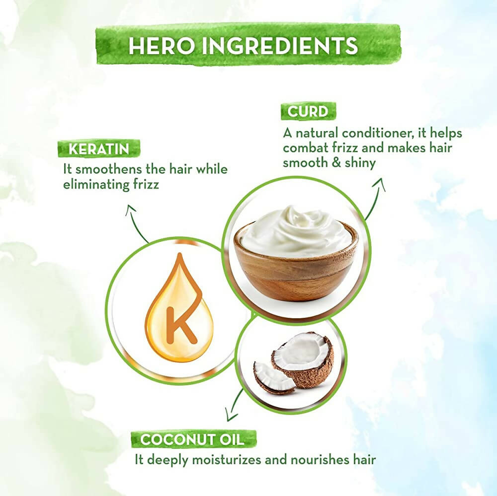 • Crafted with the goodness of Curd & Keratin, the Curd Smoothening Conditioner deeply nourishes and moisturizes the strands while taming frizz. Curd smoothens the hair while Keratin eliminates frizz leaving your hair smoother, softer, and shinier. Also infused with Coconut & Sweet Almond Oil, the conditioner locks in moisture without weighing your hair down.
