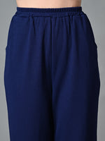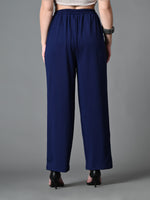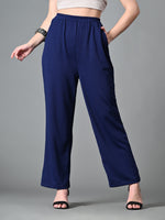 Myshka Women's Solid Ribbed High-Rise Wide Leg Casual Trousers in Navy Blue Color Pack Contains: 1 Trousers Top Length of Kurta: 38 inch Top Co...
