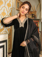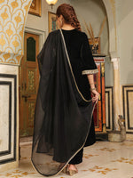 Janasya Black Velvet Embroidered Kurta,Bottom & Dupatta - XS