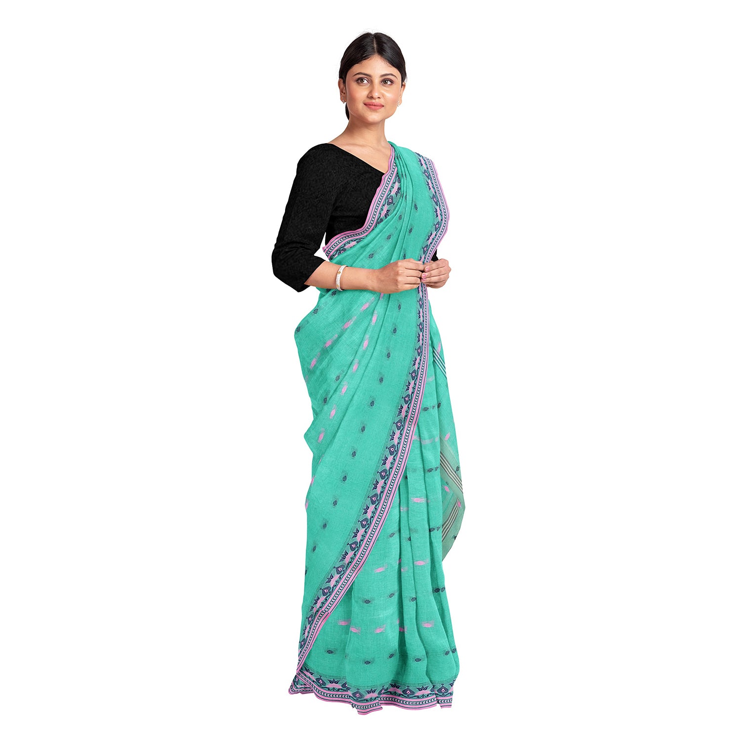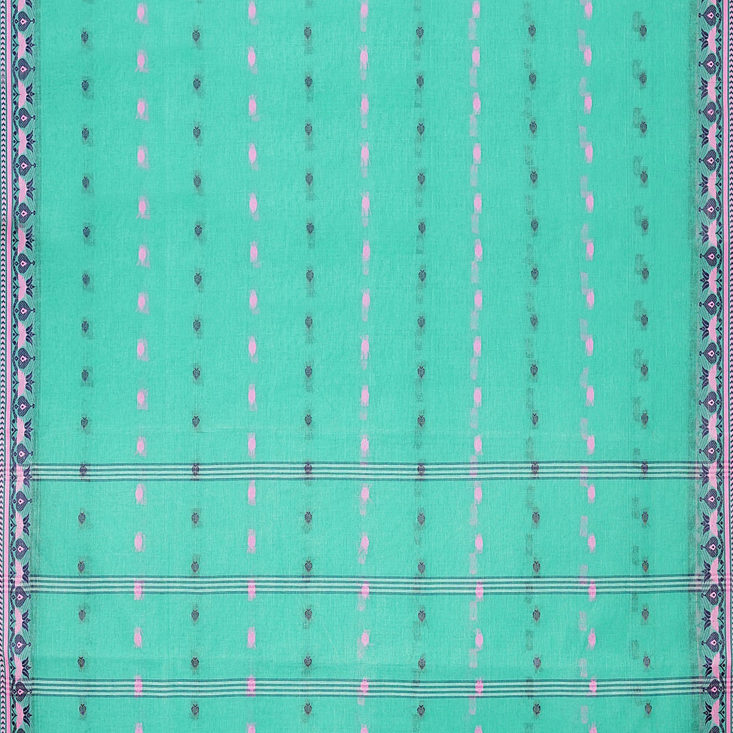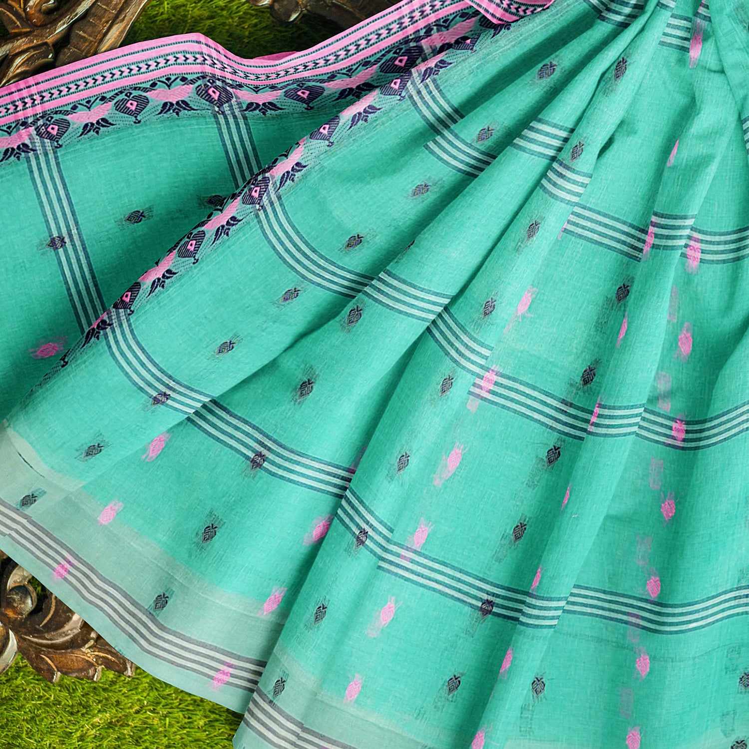 Exclusive Collection 100% Pure Cotton Green Tant Saree With Hand Weaving Work