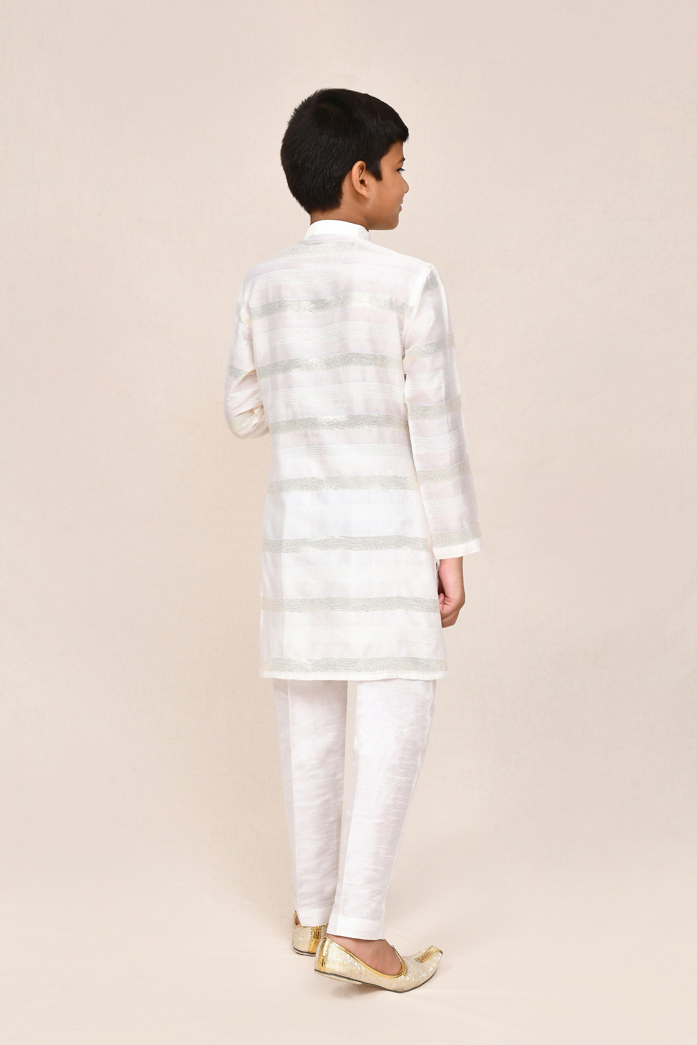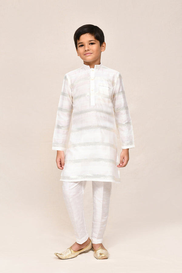 Joban Fashion Jacquard Silk Off White Kurta With Straight Fit Pant - 1Y-2Y