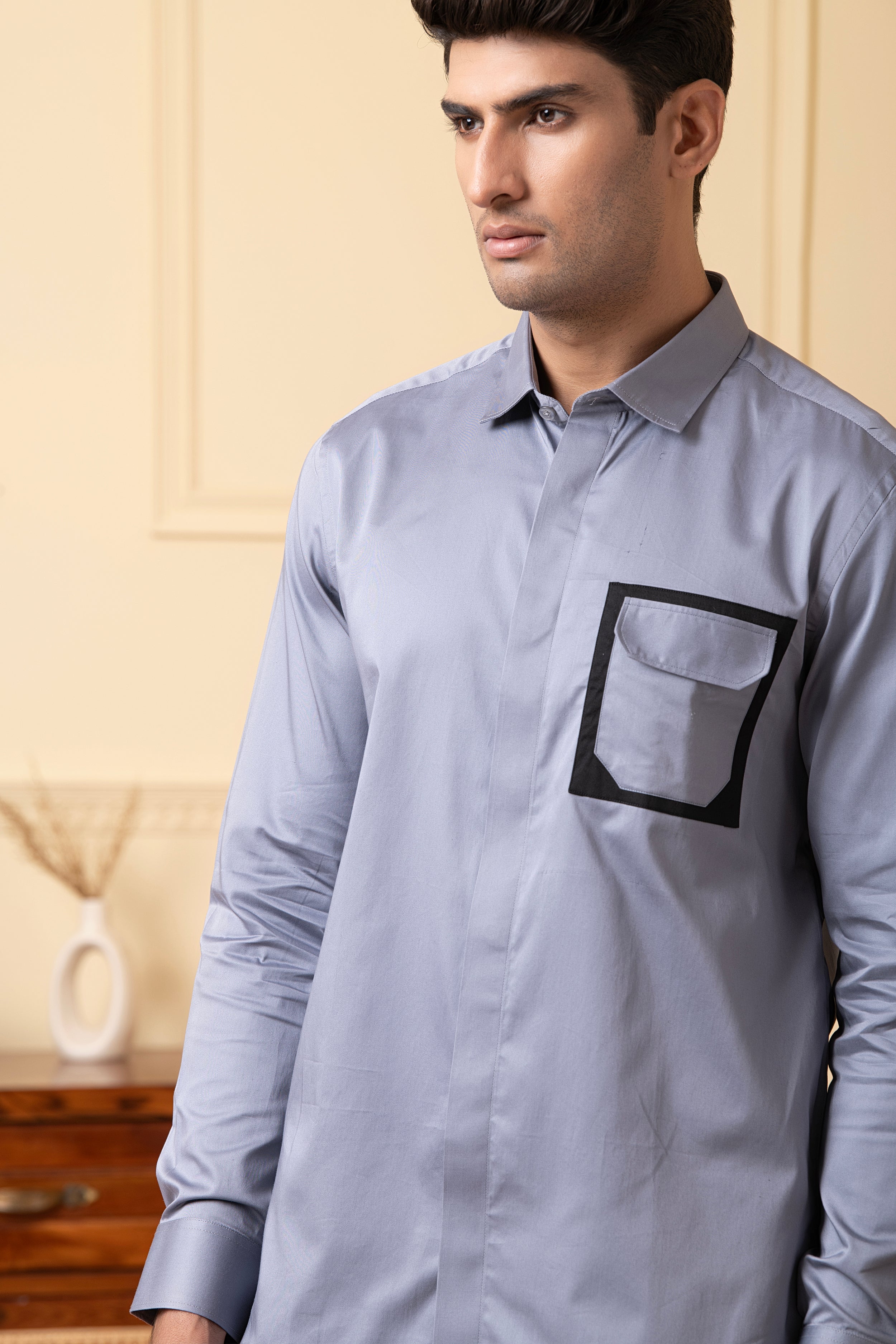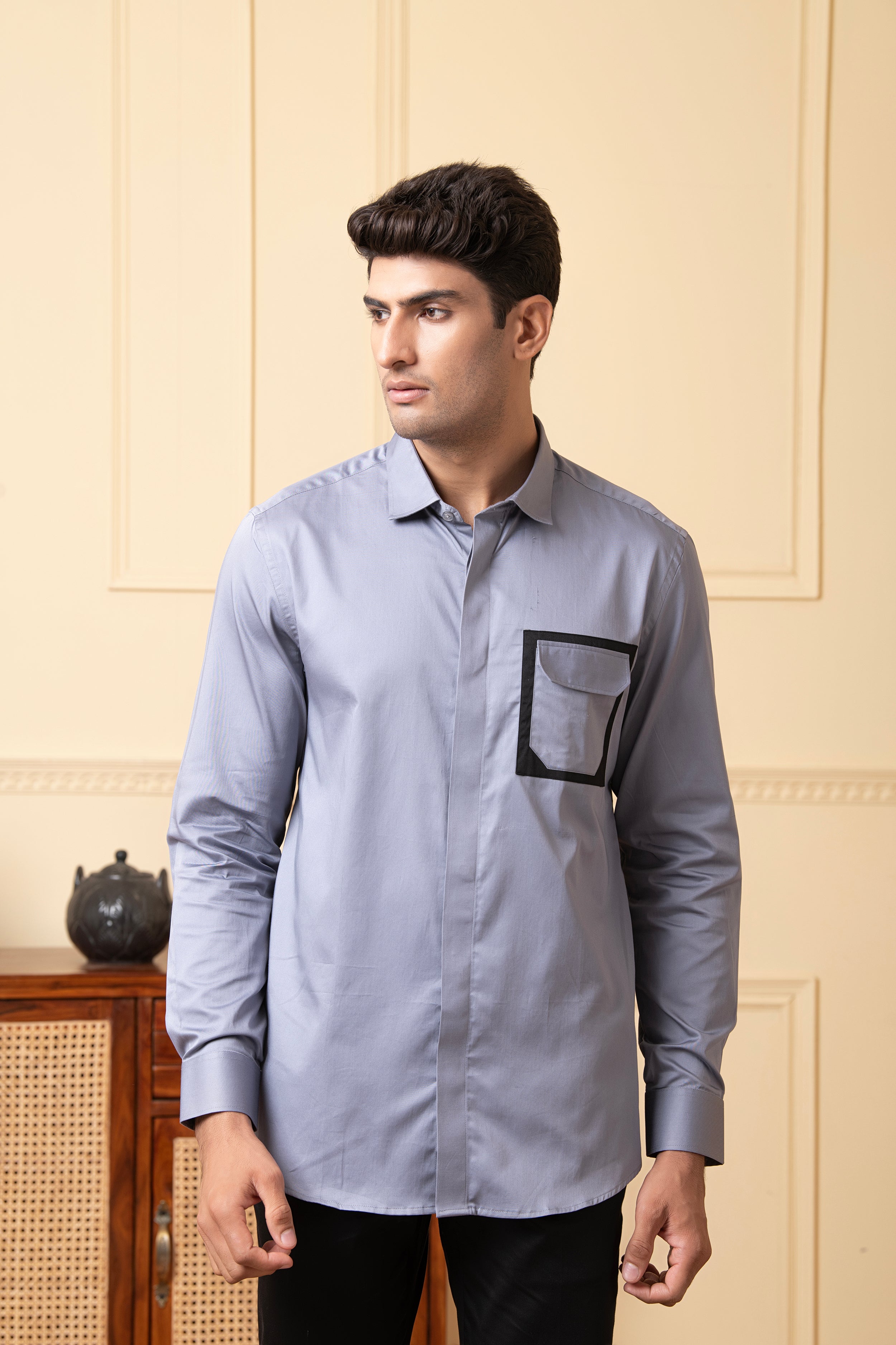 This shirt features a sophisticated design with striking Grey and Black patches, adding a unique touch to your ensemble. The concealed buttons offer a clean and refined look, while the crisp white fabric exudes timeless charm. Whether you're dressing up for a formal event or aiming for a polished everyday look, the Fusion White Shirt is your go-to choice.