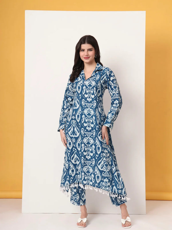 Yufta Blue Ikat Pure Cotton High Low Cord Set
