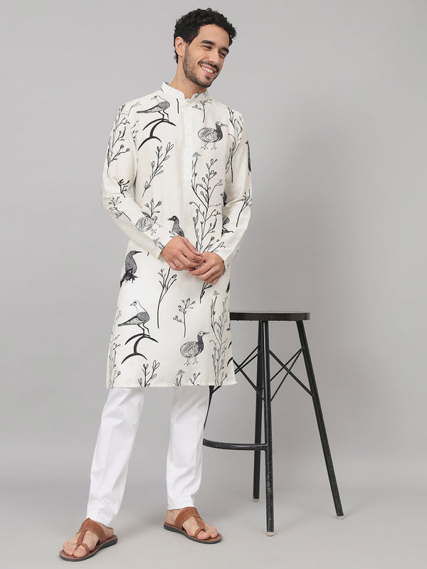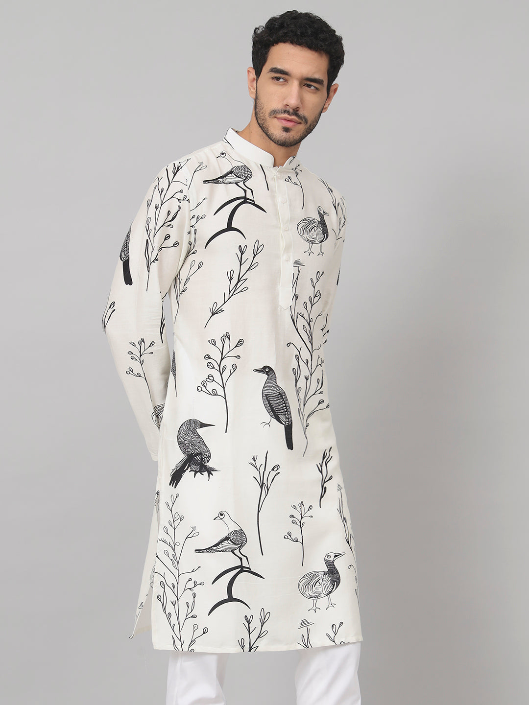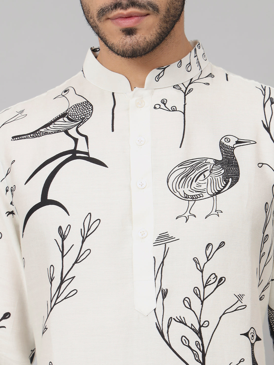 Feathered Birds Print Cotton Kurta by Hilo Design - Distacart