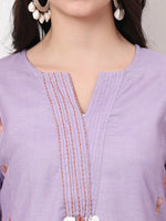 Yufta Lavender Linen Cotton A Line Kurta Dupatta Pant Set