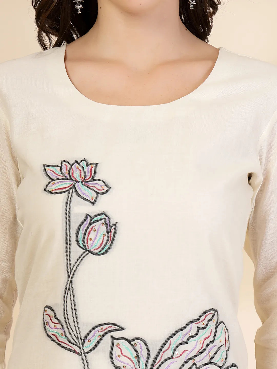 Yufta Off White Handloom Cotton Jacquard Sequins Work Kurta Dupatta Pant Set - Distacart