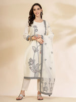 Yufta Off White Handloom Cotton Jacquard Sequins Work Kurta Dupatta Pant Set Product Details  Off white embroidered Kurta with Trousers with dupat...