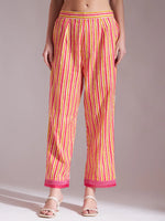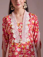 Yufta Pure Cotton Pink Kurta Dupatta Set With Lace Detailing