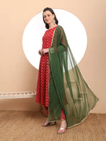 Yufta Pure Cotton Red Anarkali Kurta Dupatta Set