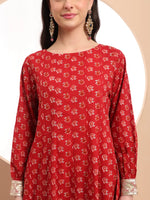 Yufta Pure Cotton Red Anarkali Kurta Dupatta Set Product Details  Red printed Kurta with Trousers with dupattaKurta design: Floral printed Anarka...