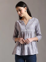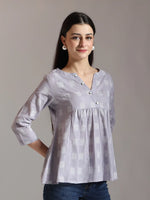 Yufta Purple Handloom Cotton Gathered Or Pleated Top Product Details  Purple regular top Geometric print Round neck, three-quarter, regular sleev...