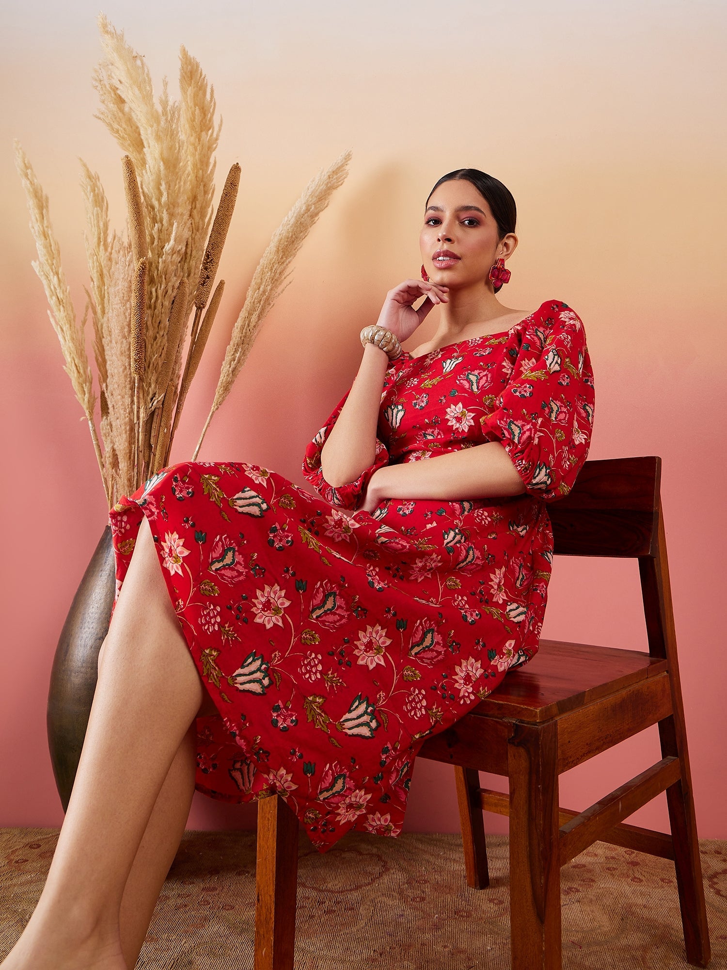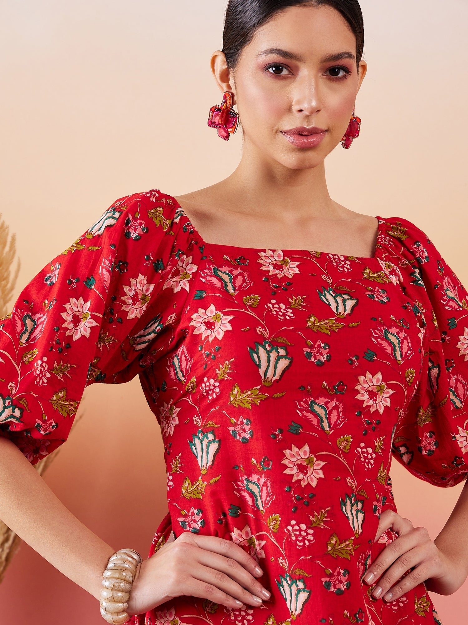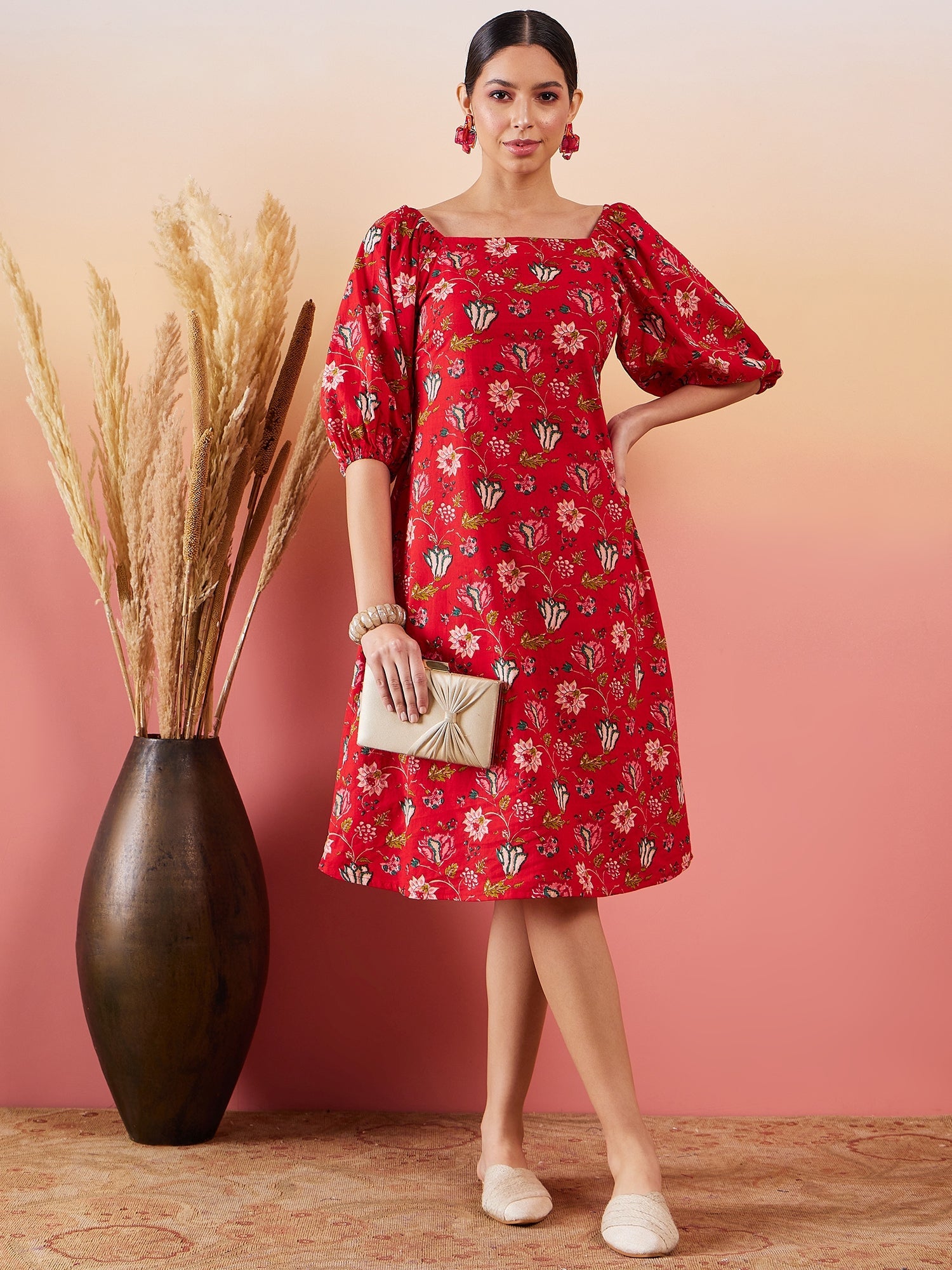 A fusion of tradition and trend, this Printed Dress will double your charm. It features a quirky print and hue. Fabric Used : Cotton Hand Wash Separately