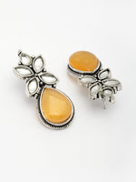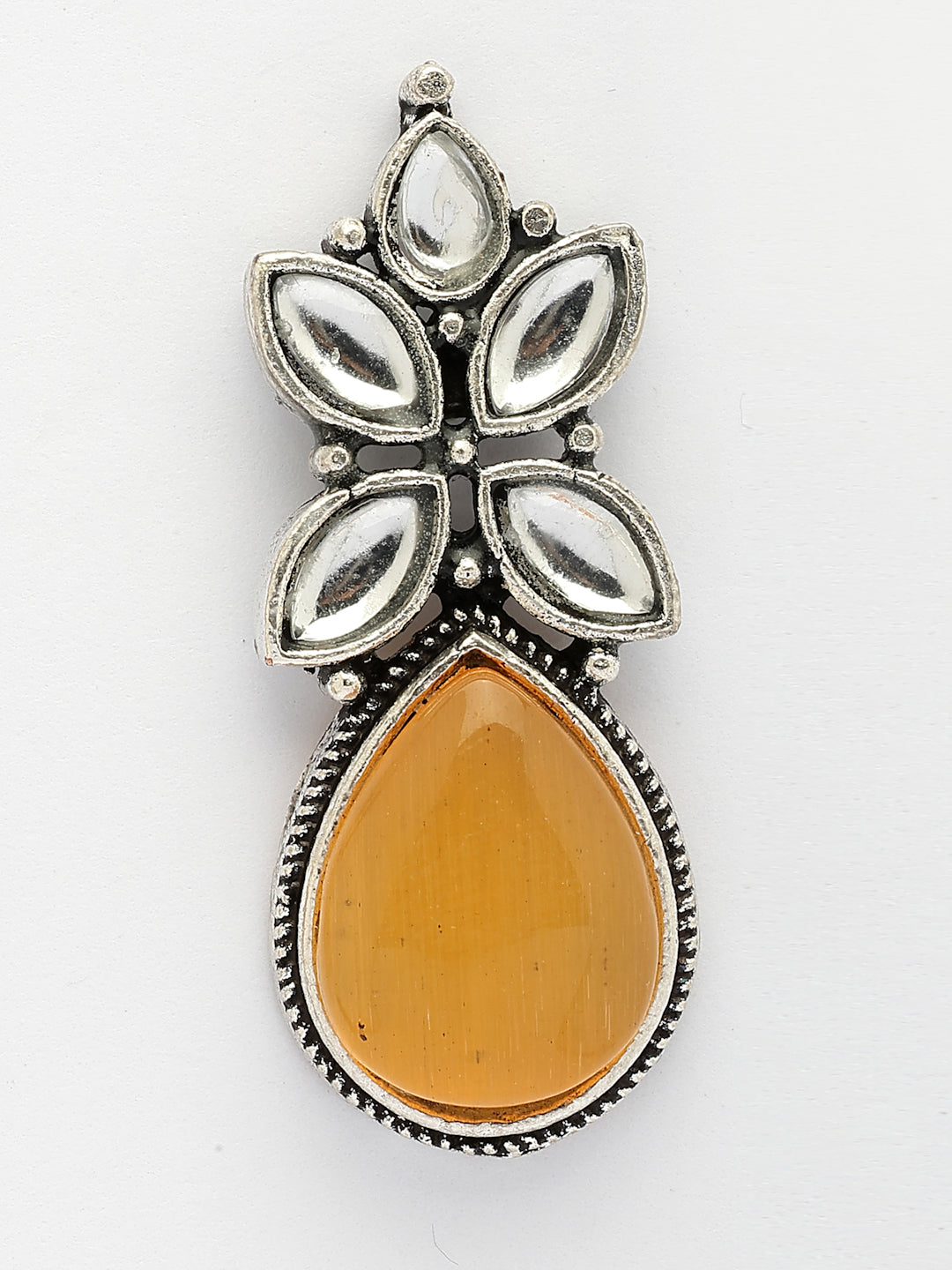 NVR Women Yellow Artificial Stones Silver Plated Drop Earrings