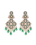 VOJ Green Stone Studded Gold-Polished Square Shaped Earrings