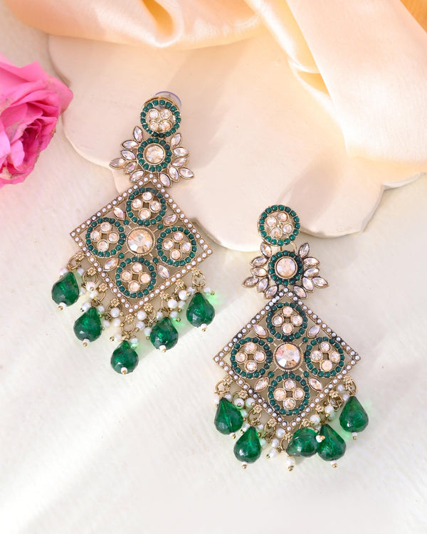 VOJ Green Stone Studded Gold-Polished Square Shaped Earrings - Distacart