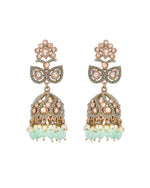 VOJ Mint Green Stone Studded Gold-Polished Jhumkas - Distacart