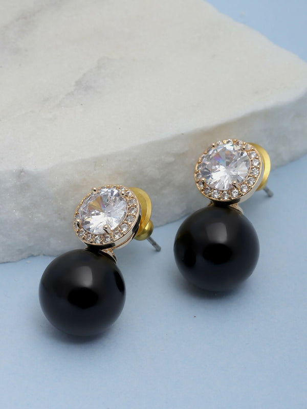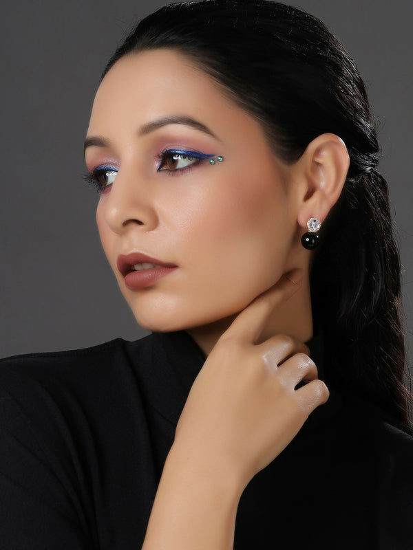 Diamond Studs with Black Drop- Ruby Raang