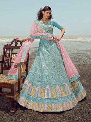 Myra Turquoise Georgette Embroidered Designer Lehenga Choli