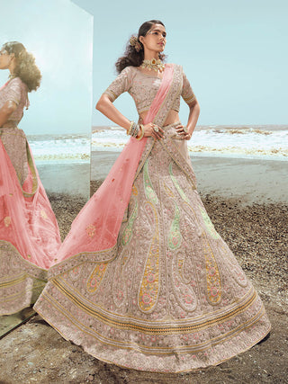 Myra Peach Soft Net Embroidered Designer Lehenga Choli