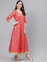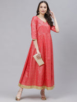 AURELIA Coral Pink & Golden Ethnic Motifs A-Line Maxi Dress - Distacart