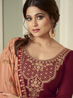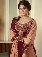 Myra Wine and Peach Georgette Embroidered Gharara Suit