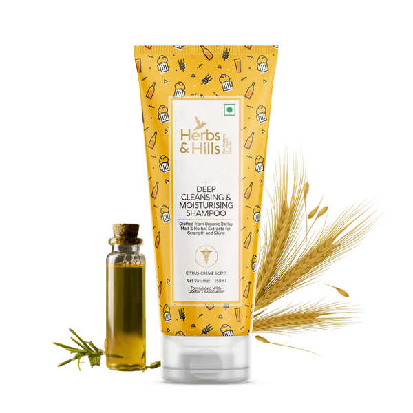 • Herbs & Hills Deep Cleansing & Moisturising Shampoo. A premium, organic shampoo suitable for all hair types. Infused with Barley Malt, Reetha extract, Brahmi extract, and Bhringraj extract, this shampoo provides a deep cleanse while nourishing and moisturizing your hair. These organic ingredients cleanse the scalp, condition hair, promote healthy hair growth, and prevent hair loss.