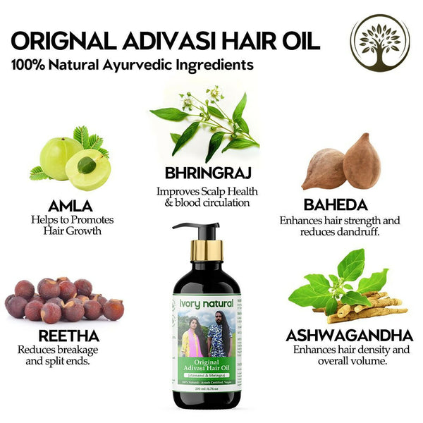 Ivory Natural Adivasi Hair Oil, is inspired by ancient Adivasi traditions and natural remedies. Made with care and enriched with special herbs, this oil nourishes your hair from root to tip. It enhances shine and luster. Affordable and effective, Adivasi Hair Oil improves dull hair and reduces the fall of hair. Enjoy its pleasant smell and soothing feel while honoring traditional beauty rituals. Discover beautiful, strong hair with Ivory Natural Adivasi Hair Oil. Try it now and see the difference!