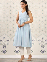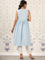 Ode by House of Pataudi Blue Geometric Printed A-Line Kurta - S