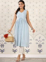 Ode by House of Pataudi Blue Geometric Printed A-Line Kurta