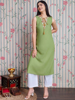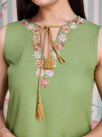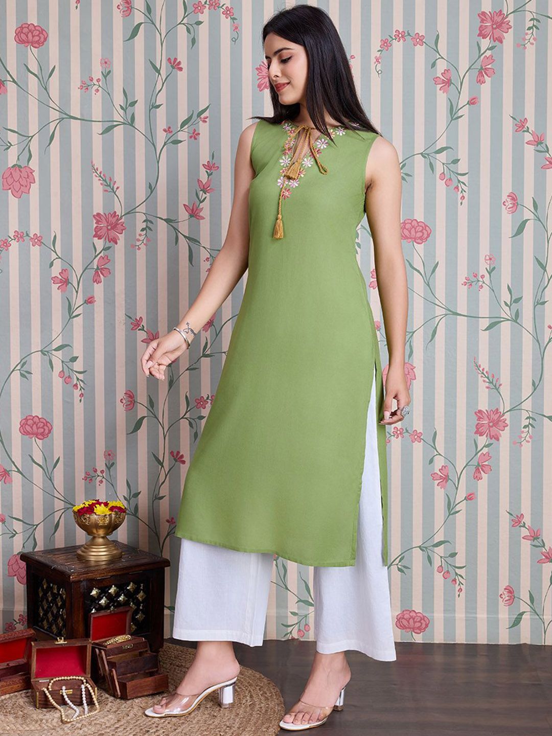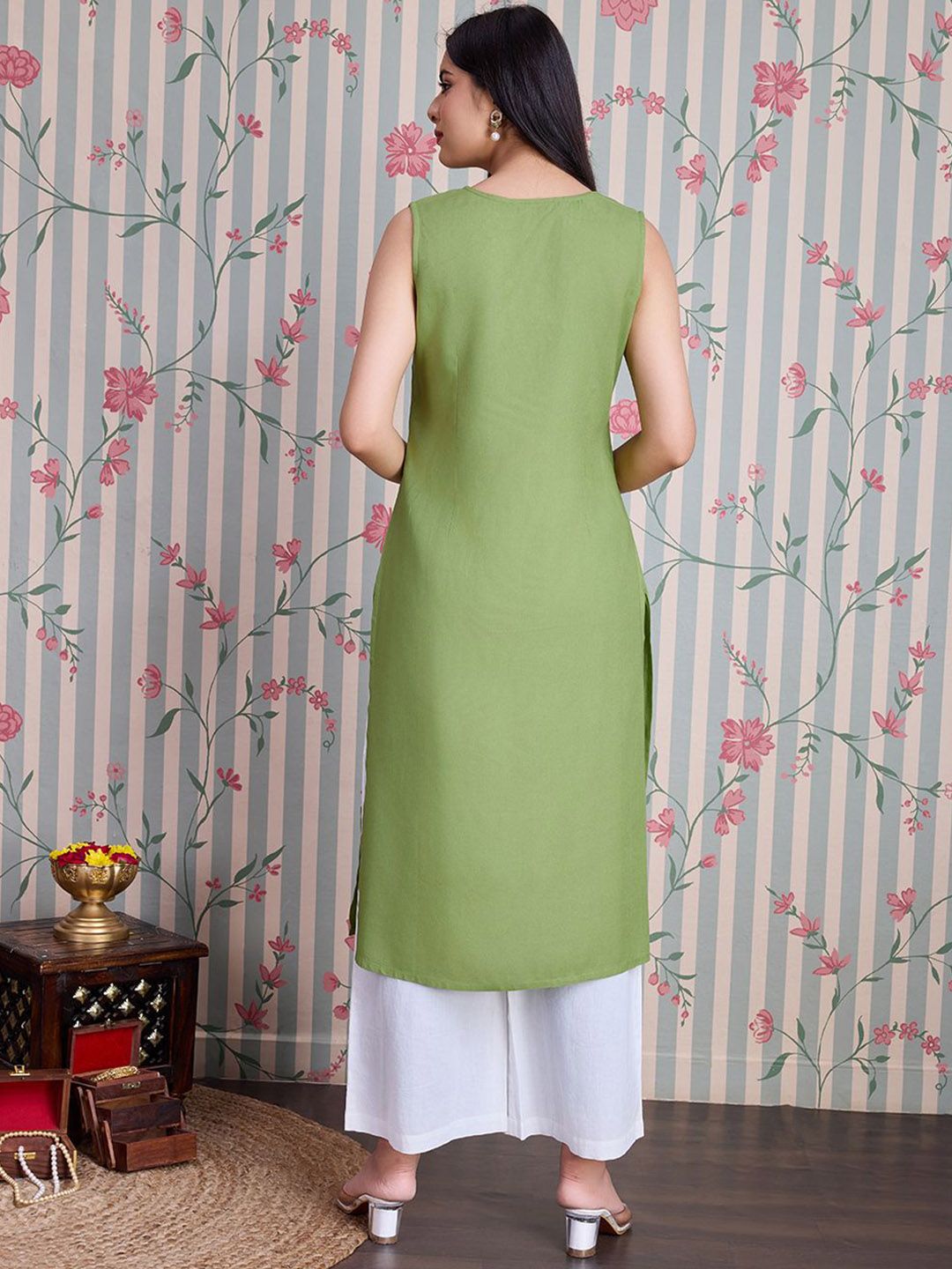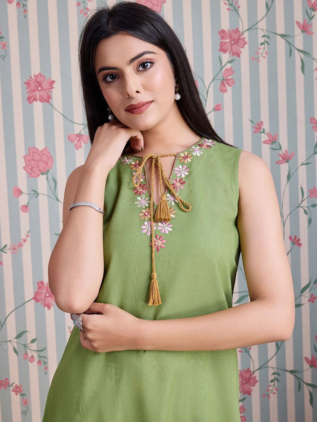 Ode by House of Pataudi Embroidered Thread Work Straight Kurta with Palazzos Product Details Green embroidered Kurta with PalazzosKurta design: ...