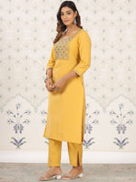 Ode by House of Pataudi Ethnic Motifs Yoke Design Thread Work Straight Kurta with Trousers Product Details Yellow yoke design kurta with trouser...